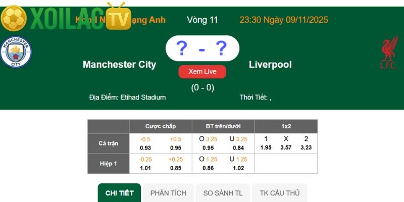Để mang đến cái nhìn tổng quan nhất cho người hâm mộ, các nhà cái đã đưa ra bảng tỷ lệ kèo chi tiết cho trận đại chiến giữa Manchester City và Liverpool.